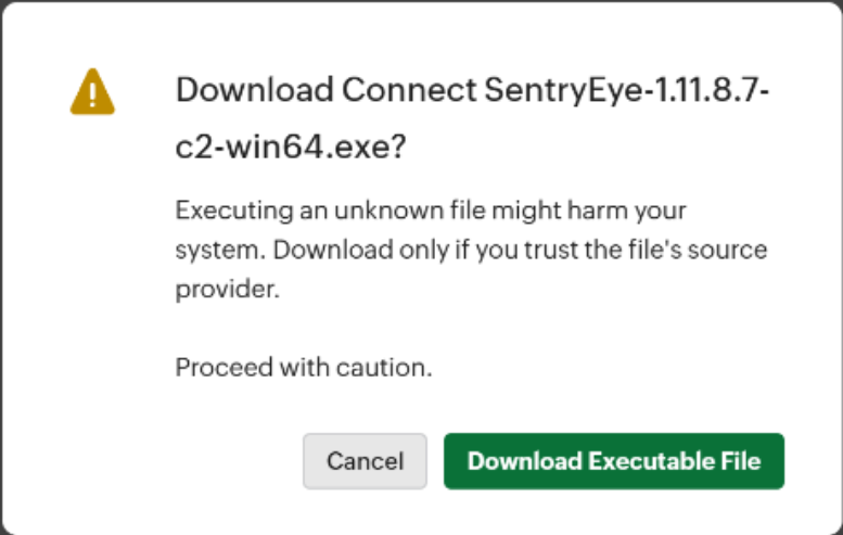 You may see a security confirmation when downloading the installer. Select Download Executable File to continue.